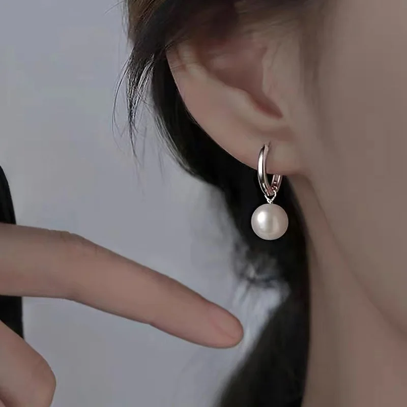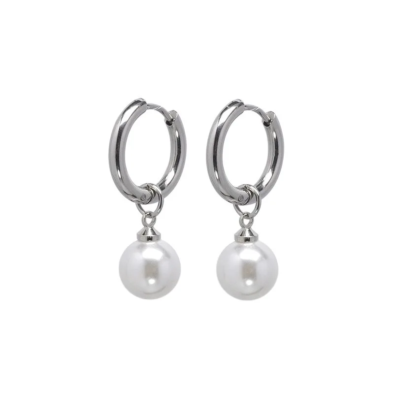 1Pair New In Fashion Elegant Imitation Pearl Dangle Earrings Titanium steel No Piercing Earrings For Women Men Pendient Ear Stud