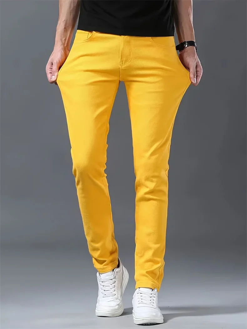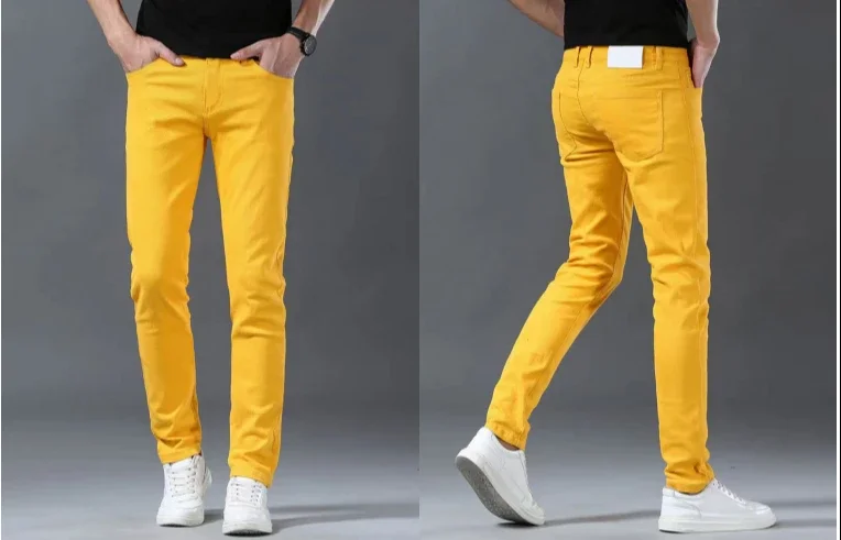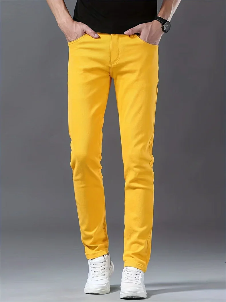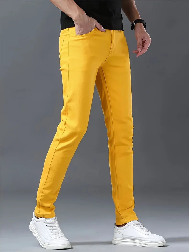 Men's Yellow Fashion Jeans - Slim Fit Elastic Casual